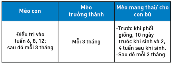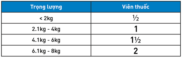 - Một viên /4 kg thể trọng mèo.