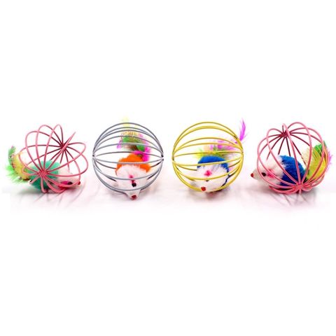 Đồ chơi cho chó mèo, bóng lồng sắt có chuột lông vũ