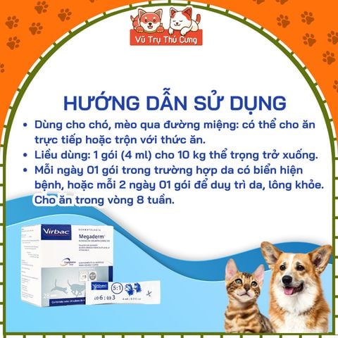 Gel dinh dưỡng MEGADERM VIRBAC dưỡng lông, giảm ngứa cho Chó Mèo | tuýp dầu cá Megaderm dưỡng lông và dưỡng da chó mèo2