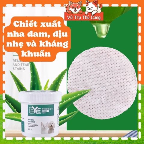 Khăn Ướt Chiết Xuất Lô Hội Lau Mắt và Tai Cho Chó Mèo - Ngăn Ngừa Viêm Nhiễm, Hộp 130 Miếng